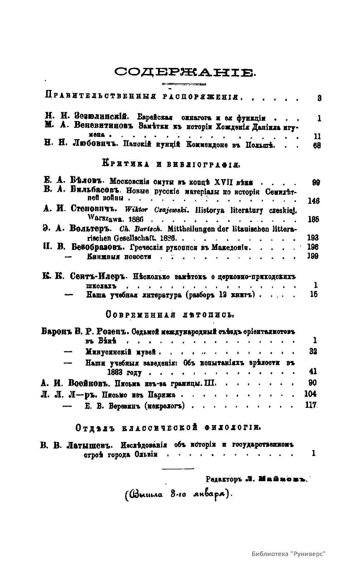 (помощник редактора, с 1899 года - редактор).