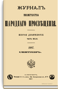 Журнал Министерства народного просвещения выходил с 1834-го по 1917 год. Официальный периодический журнал об успехах просвещения в России. Издатели журнала уверены в том, что «если для каждого человека необходим выход из грубой тьмы невежества и беспрерывное дальнейшее движение к свету, то для народов необходимо попечительное участие правительства в образовании. Только правительство имеет все средства знать и высоту успехов всемирного образования, и настоящие нужды Отечества».