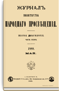 Журнал Министерства народного просвещения выходил с 1834-го по 1917 год. Официальный периодический журнал об успехах просвещения в России. Издатели журнала уверены в том, что «если для каждого человека необходим выход из грубой тьмы невежества и беспрерывное дальнейшее движение к свету, то для народов необходимо попечительное участие правительства в образовании. Только правительство имеет все средства знать и высоту успехов всемирного образования, и настоящие нужды Отечества».