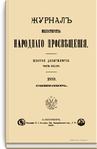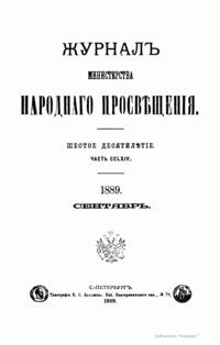 Журнал Министерства народного просвещения выходил с 1834-го по 1917 год. Официальный периодический журнал об успехах просвещения в России. Издатели журнала уверены в том, что «если для каждого человека необходим выход из грубой тьмы невежества и беспрерывное дальнейшее движение к свету, то для народов необходимо попечительное участие правительства в образовании. Только правительство имеет все средства знать и высоту успехов всемирного образования, и настоящие нужды Отечества».