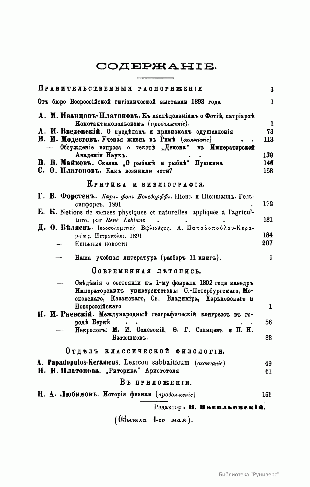 (помощник редактора, с 1899 года - редактор).