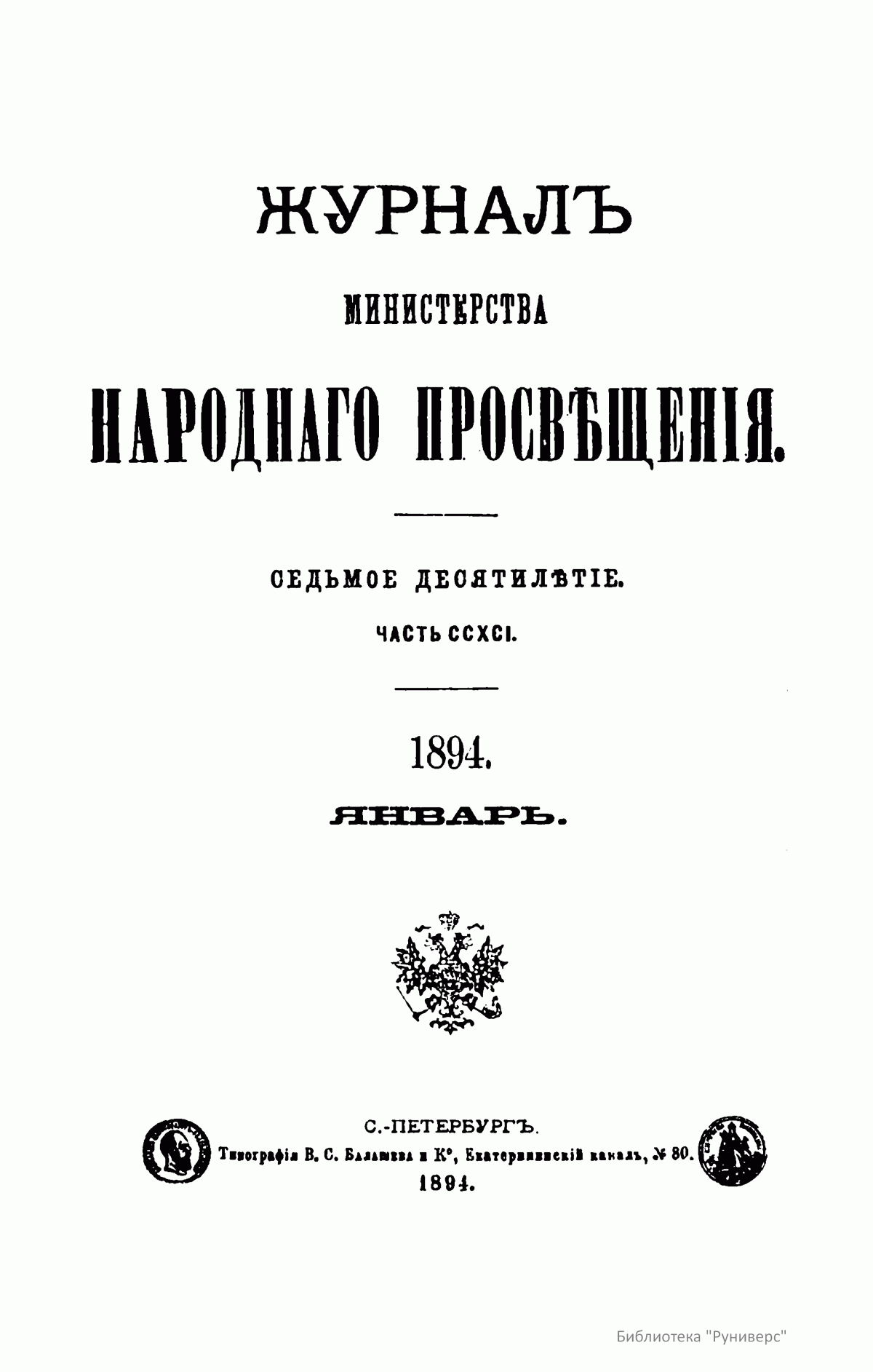 Журналъ Министерства народнаго просвѣщения. Часть CCXCI