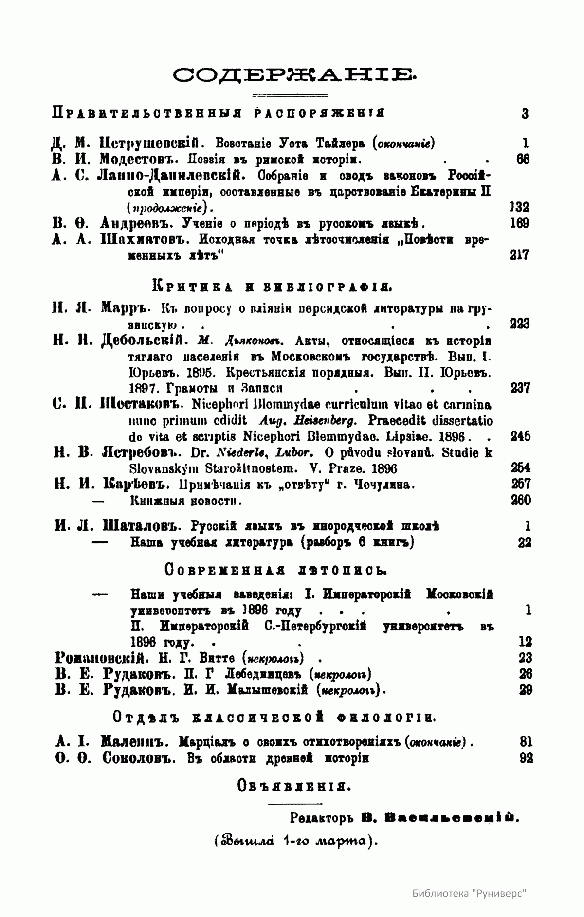 Журнал широкого профиля (гуманитарные науки), но в нем печатались философские статьи, имеется много официального материала, ценного для понимания истории философии в России.