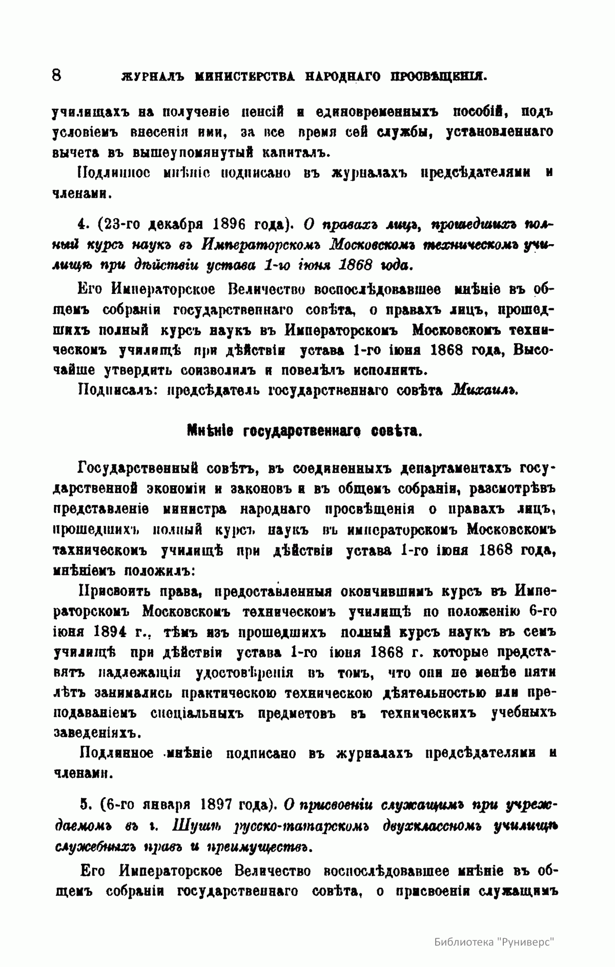 Журнал Министерства народного просвещения выходил с 1834-го по 1917 год. Официальный периодический журнал об успехах просвещения в России. Издатели журнала уверены в том, что «если для каждого человека необходим выход из грубой тьмы невежества и беспрерывное дальнейшее движение к свету, то для народов необходимо попечительное участие правительства в образовании. Только правительство имеет все средства знать и высоту успехов всемирного образования, и настоящие нужды Отечества».