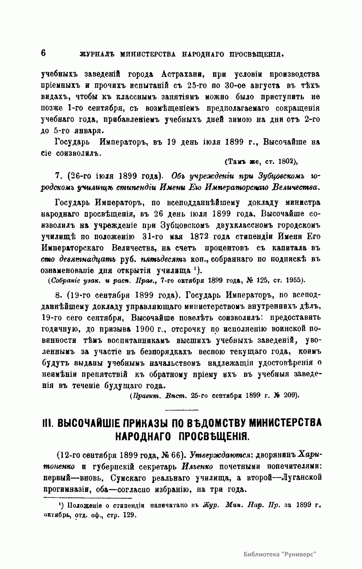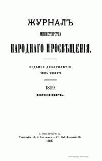 Журнал Министерства народного просвещения выходил с 1834-го по 1917 год. Официальный периодический журнал об успехах просвещения в России. Издатели журнала уверены в том, что «если для каждого человека необходим выход из грубой тьмы невежества и беспрерывное дальнейшее движение к свету, то для народов необходимо попечительное участие правительства в образовании. Только правительство имеет все средства знать и высоту успехов всемирного образования, и настоящие нужды Отечества».