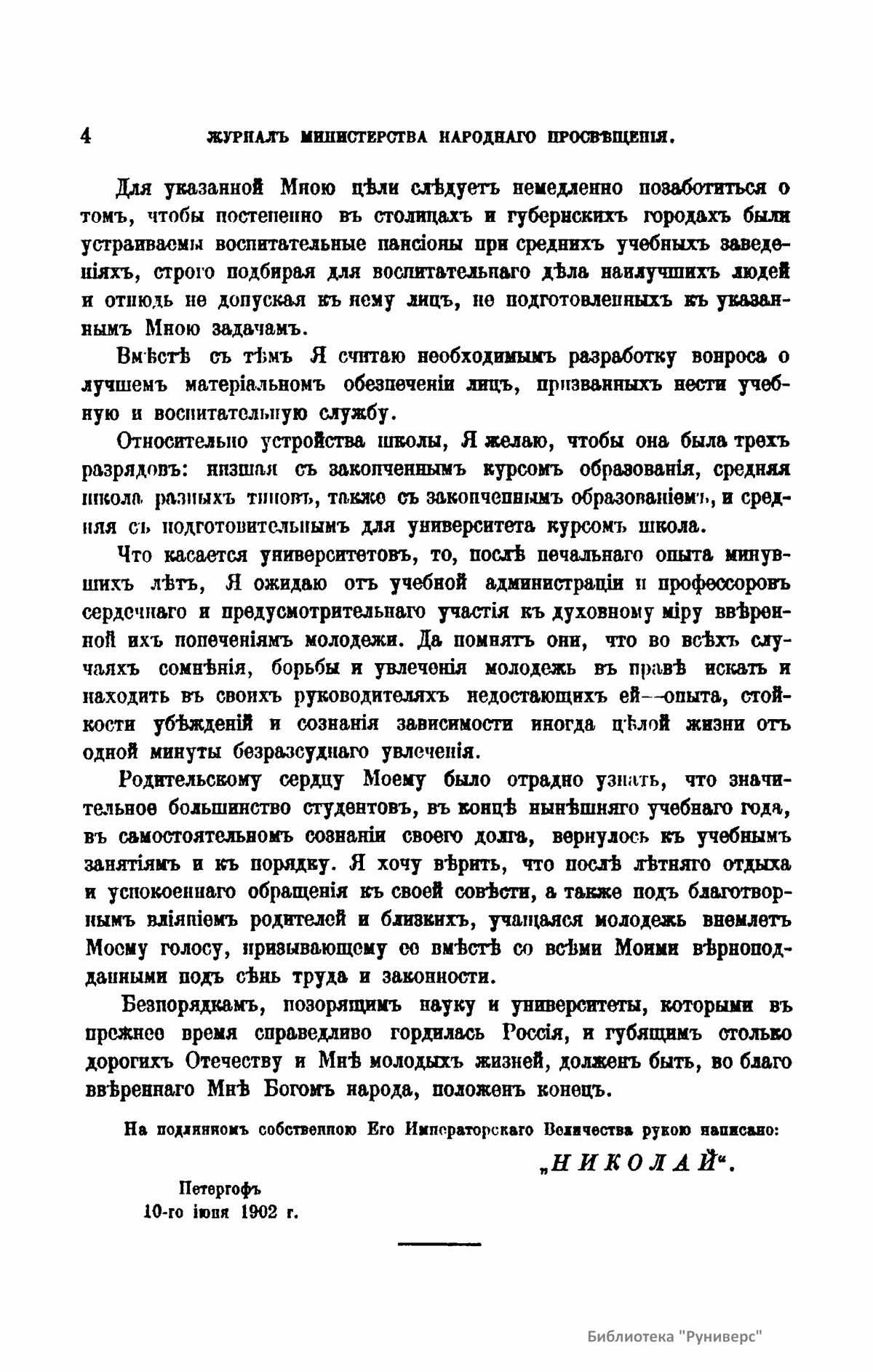 Журнал Министерства народного просвещения выходил с 1834-го по 1917 год. Официальный периодический журнал об успехах просвещения в России. Издатели журнала уверены в том, что «если для каждого человека необходим выход из грубой тьмы невежества и беспрерывное дальнейшее движение к свету, то для народов необходимо попечительное участие правительства в образовании. Только правительство имеет все средства знать и высоту успехов всемирного образования, и настоящие нужды Отечества».