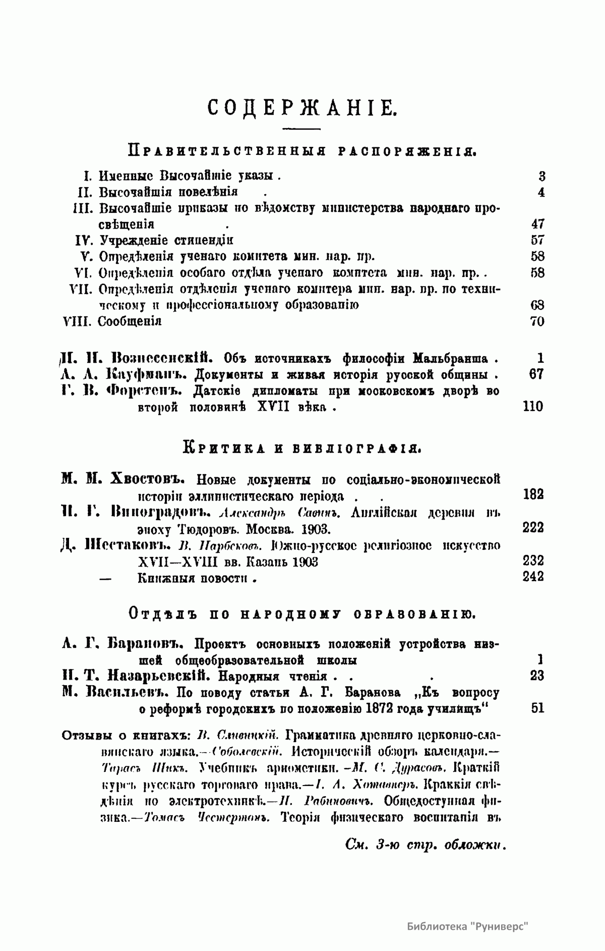 Журнал широкого профиля (гуманитарные науки), но в нем печатались философские статьи, имеется много официального материала, ценного для понимания истории философии в России.