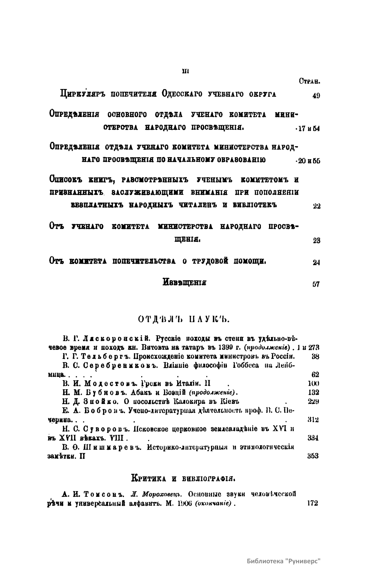 Журнал Министерства народного просвещения выходил с 1834-го по 1917 год. Официальный периодический журнал об успехах просвещения в России. Издатели журнала уверены в том, что «если для каждого человека необходим выход из грубой тьмы невежества и беспрерывное дальнейшее движение к свету, то для народов необходимо попечительное участие правительства в образовании. Только правительство имеет все средства знать и высоту успехов всемирного образования, и настоящие нужды Отечества».