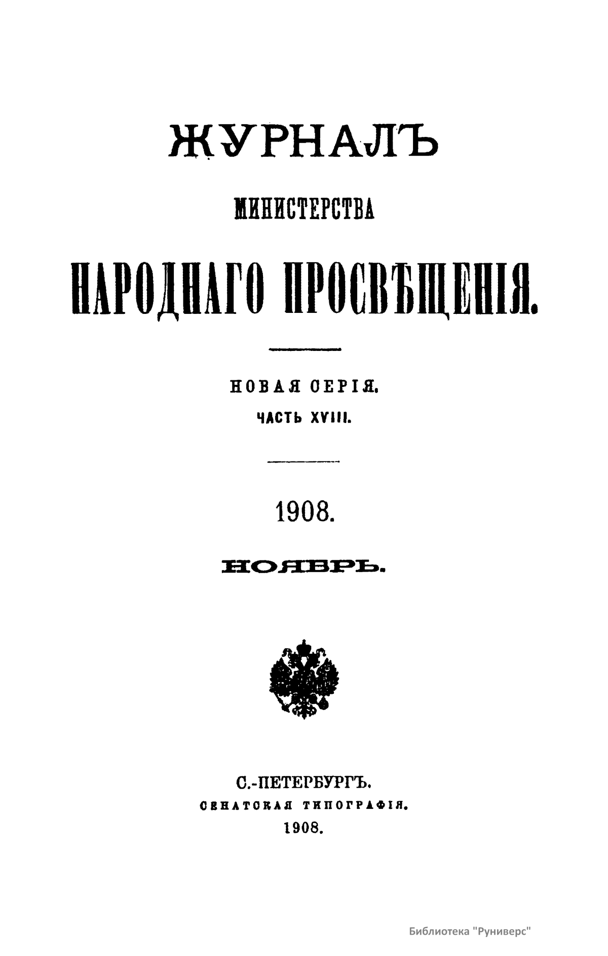 Журнал Министерства народного просвещения. Новая серия. Часть XVIII