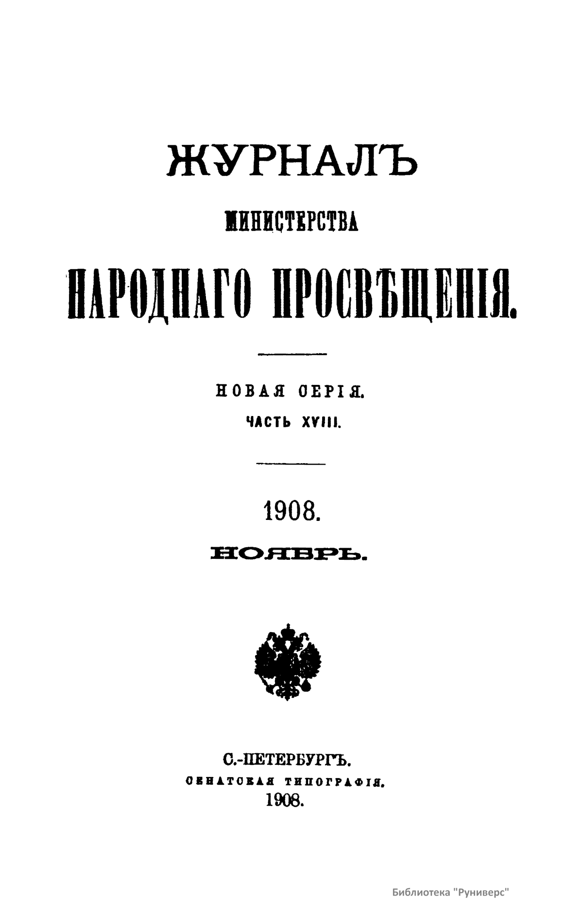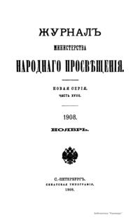 Журналъ Министерства народнаго просвѣщения. Новая серiя. Часть XVIII