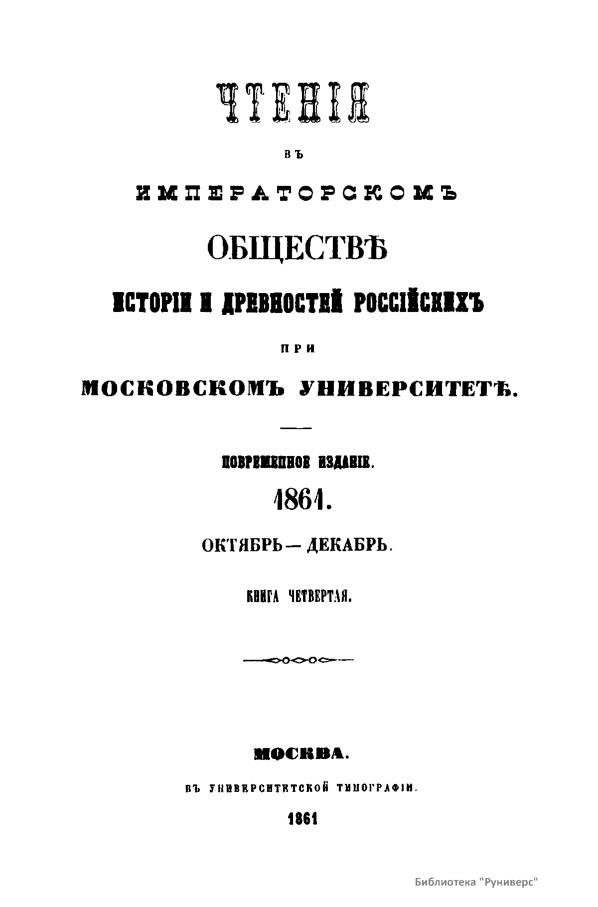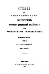 Чтенiя въ Императорскомъ Обществѣ Исторiи и Древностей Россiйскихъ при Московскомъ Университетѣ. 1861. Октябрь-Декабрь. Книга четвертая
