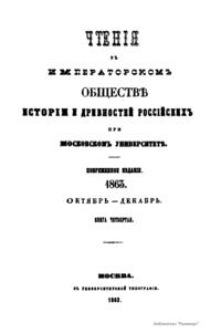 Чтенiя въ Императорскомъ Обществѣ Исторiи и Древностей Россiйскихъ при Московскомъ Университетѣ. 1863. Октябрь-Декабрь. Книга четвертая