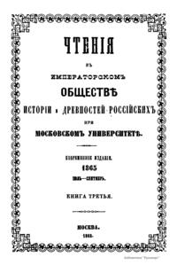 Чтенiя въ Императорскомъ Обществѣ Исторiи и Древностей Россiйскихъ при Московскомъ Университетѣ. 1865. Iюль-Сентябрь. Книга третья