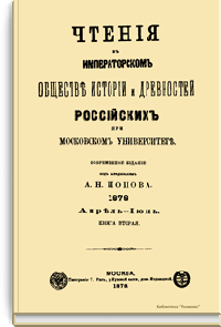 Чтенiя въ Императорскомъ Обществѣ Исторiи и Древностей Россiйскихъ при Московскомъ Университетѣ. 1878. Апрѣль-Iюнь. Книга вторая