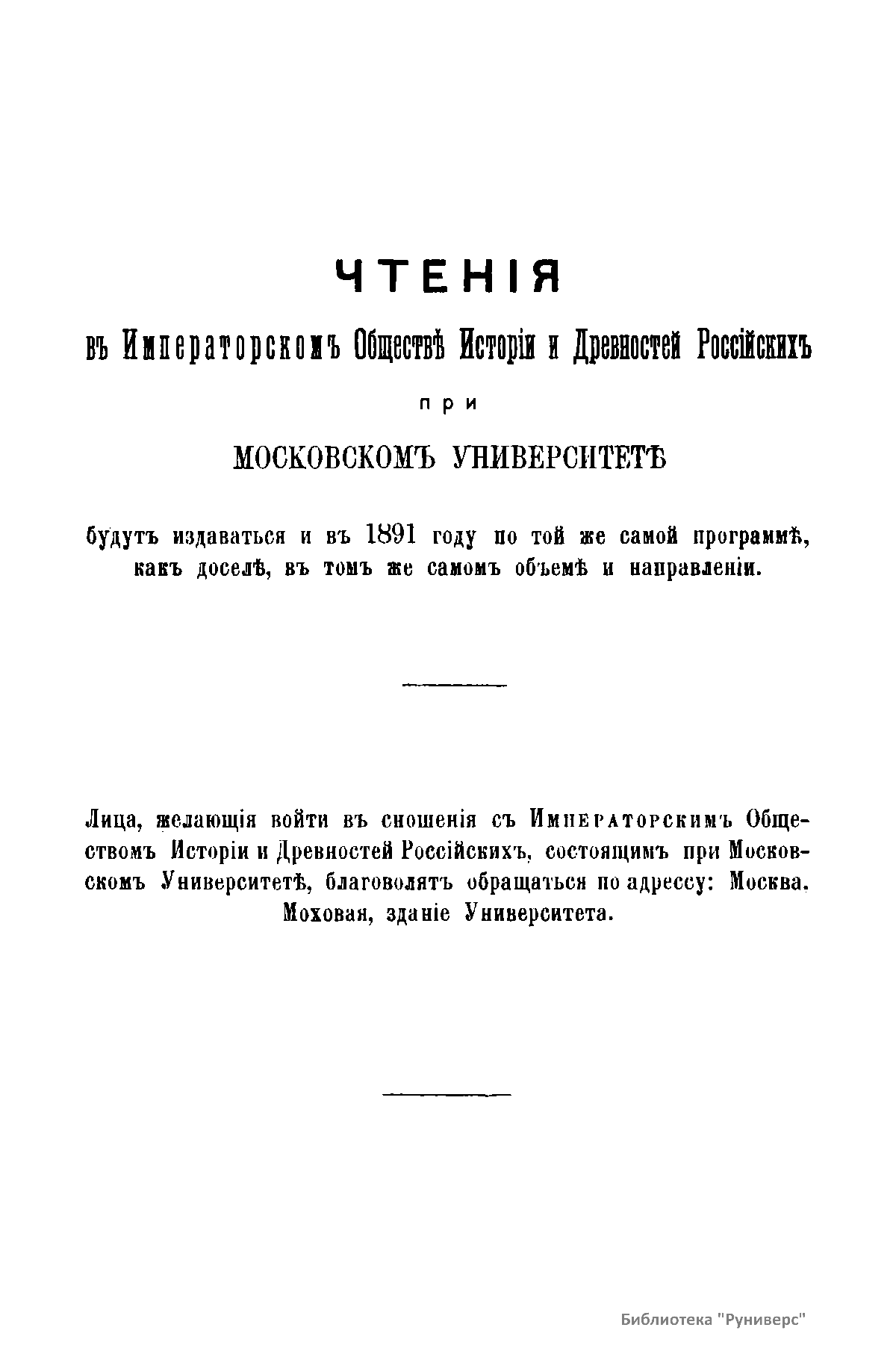 Чтенiя въ Императорскомъ Обществѣ Исторiи и Древностей Россiйскихъ при Московскомъ Университетѣ. 1890 годъ. Книга третья