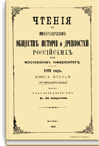 Чтенiя въ Императорскомъ Обществѣ Исторiи и Древностей Россiйскихъ при Московскомъ Университетѣ. 1891 годъ. Книга вторая