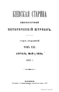 Кiевская старина. Годъ седьмой. Томъ XXI. Апрѣль-Iюнь 1888 г.