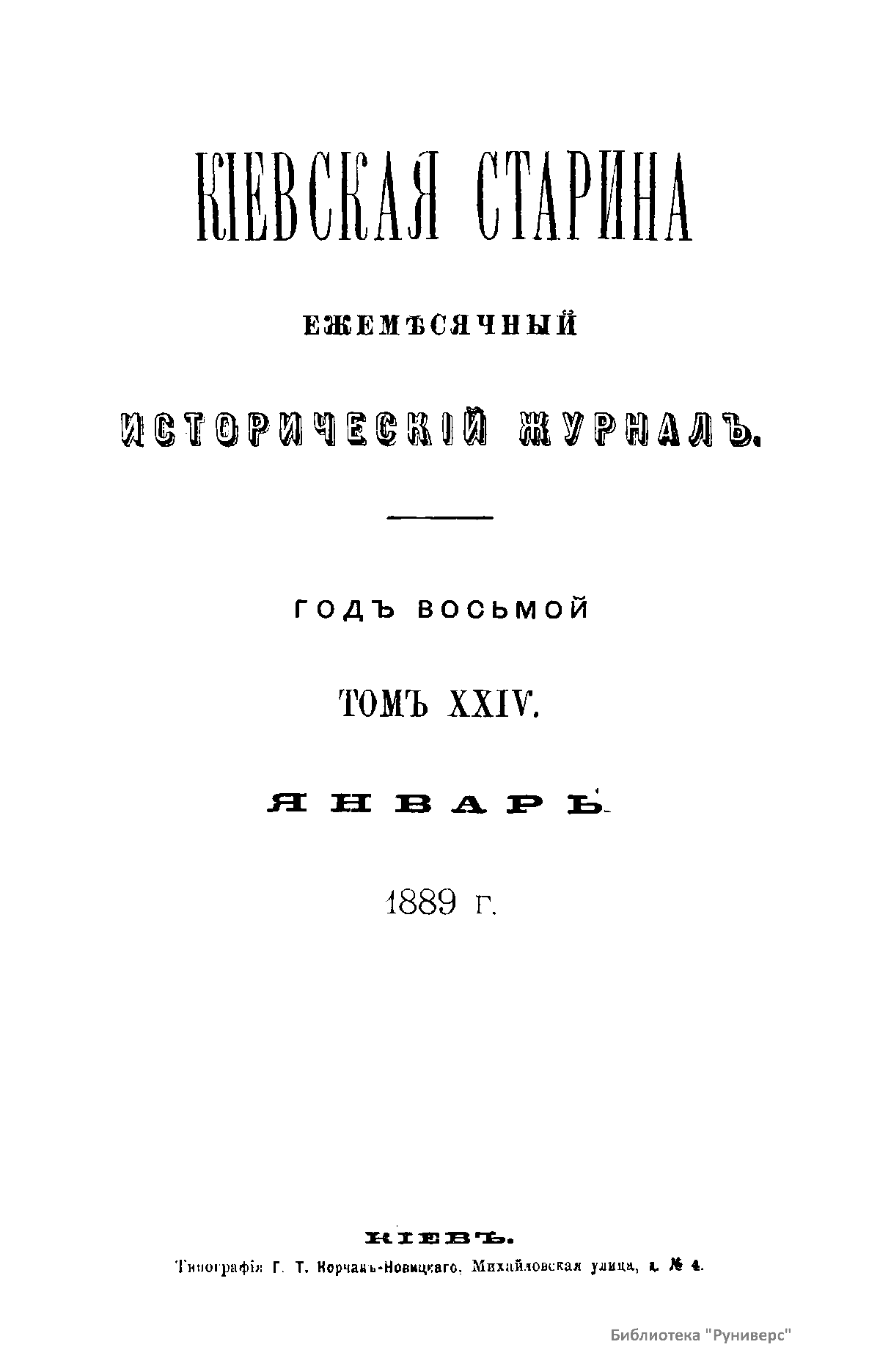 Кiевская старина. Годъ восьмой. Томъ XXIV. Январь-Мартъ 1889 г.