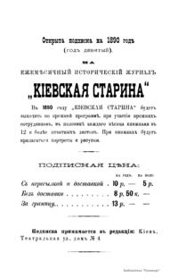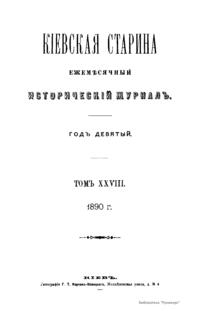 Кiевская старина. Годъ девятый. Томъ XXVIII. Январь-Мартъ 1890 г.