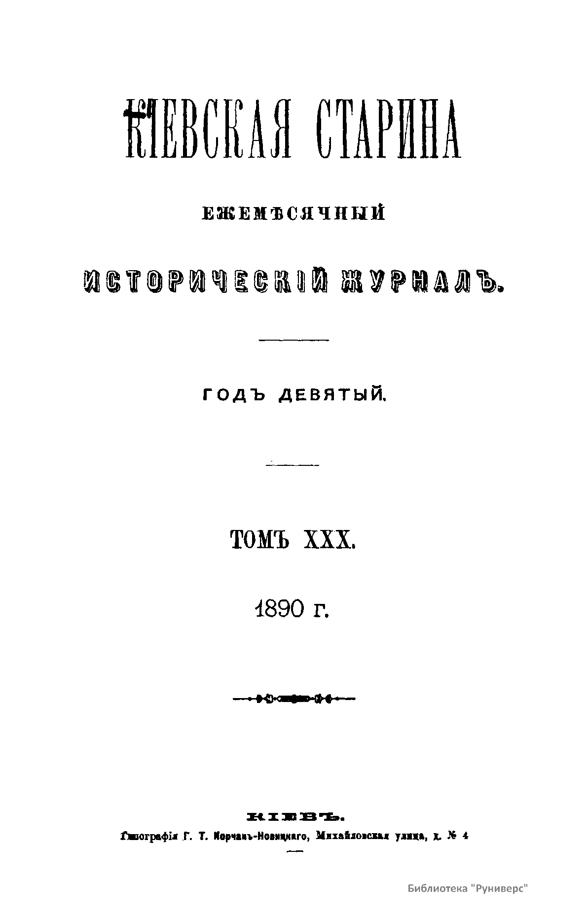 Киевская старина. Год девятый. Том XXX. Июль-Сентябрь 1890 г.