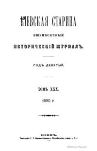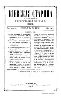 Кiевская старина. Годъ девятый. Томъ XXX. Iюль-Сентябрь 1890 г.