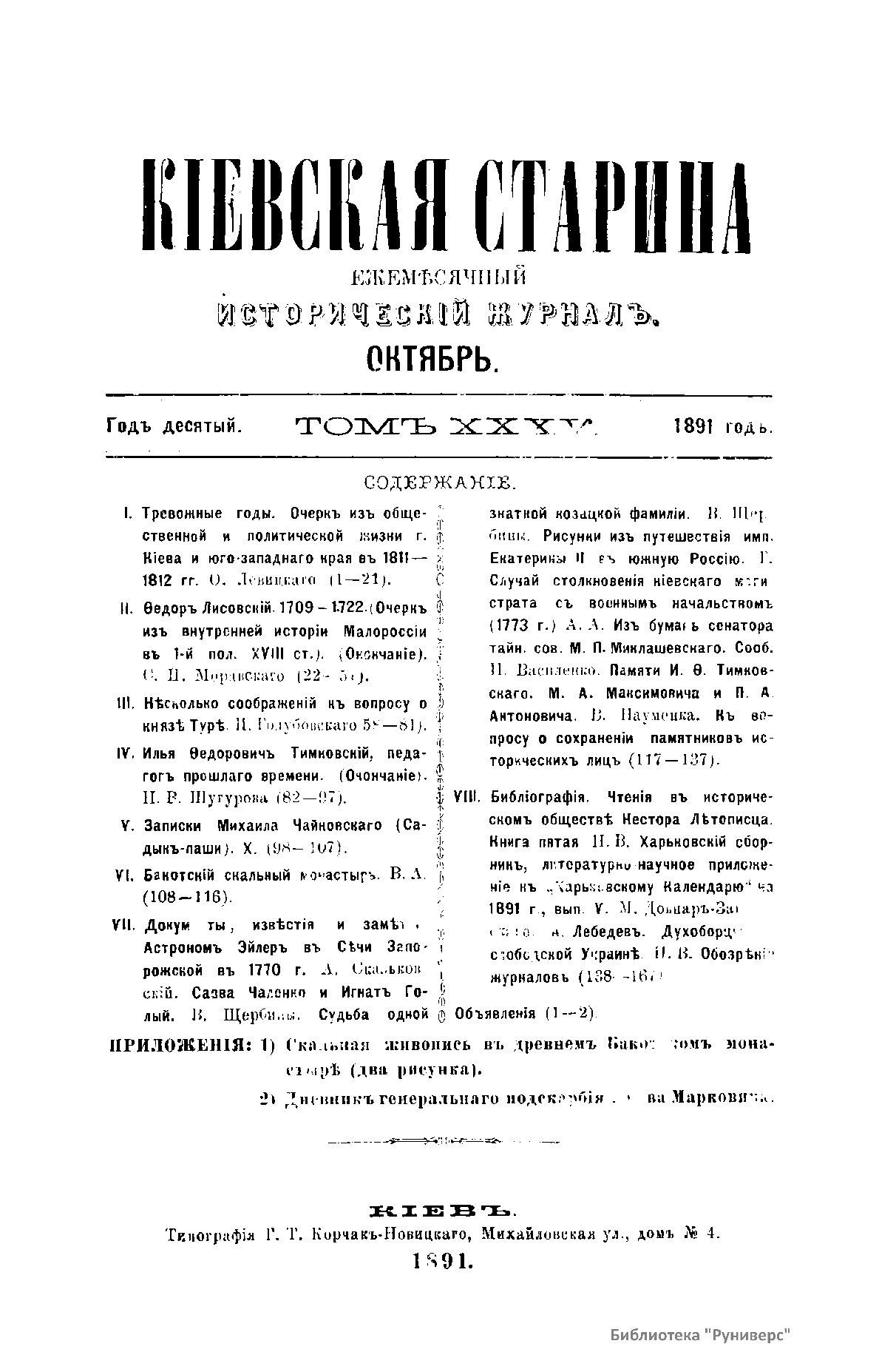 Кiевская старина. Годъ десятый. Томъ XXXV. Октябрь-Декабрь 1891 г.