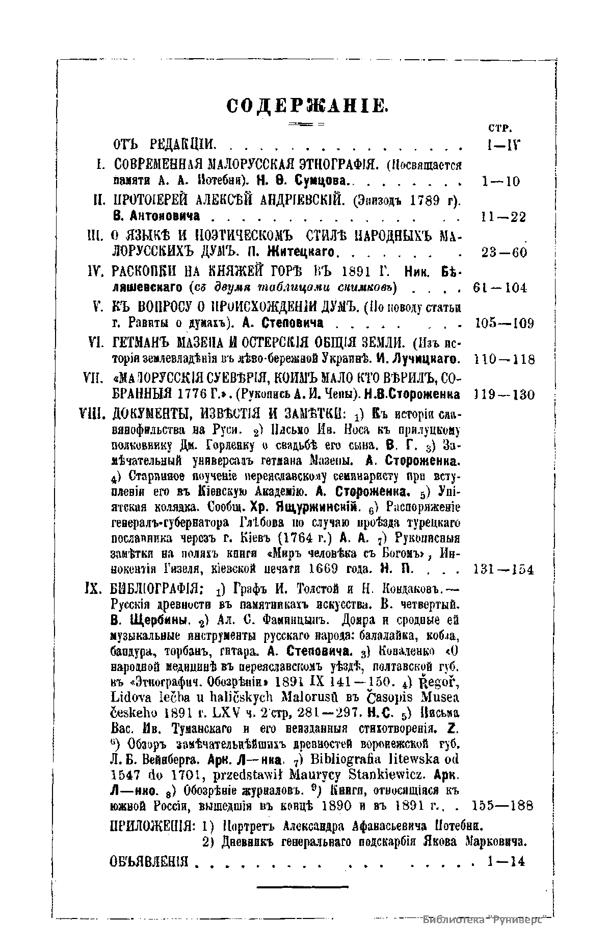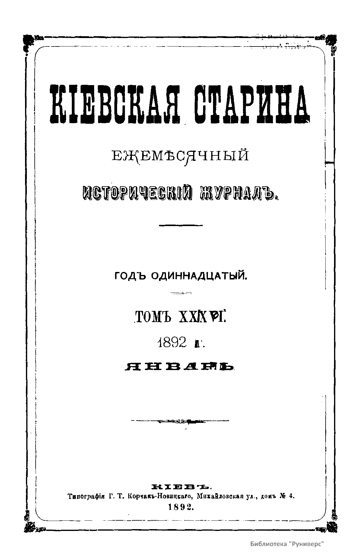 Кiевская старина. Годъ одиннадцатый. Томъ XXXVI. Январь-Мартъ 1892 г.