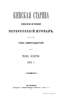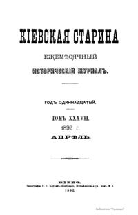 Кiевская старина. Годъ одиннадцатый. Томъ XXXVII. Апрѣль-Iюнь 1892 г.