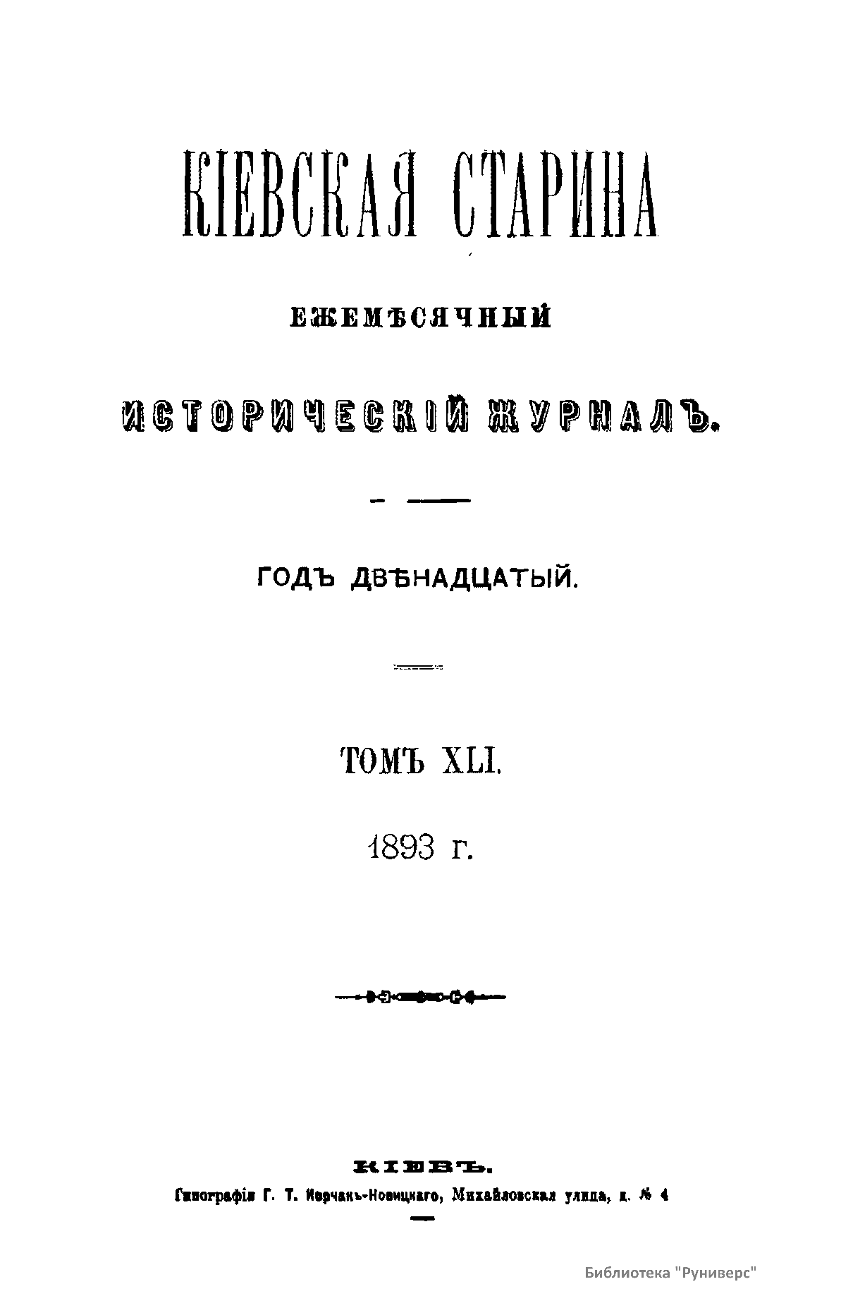 Киевская старина. Год двенадцатый. Том XLI. Апрель-Июнь 1893 г.