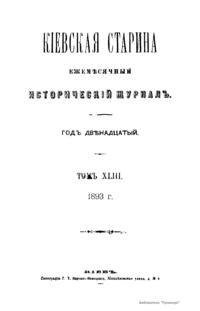 Киевская старина. Год двенадцатый. Том XLIII. Октябрь-Декабрь 1893 г.