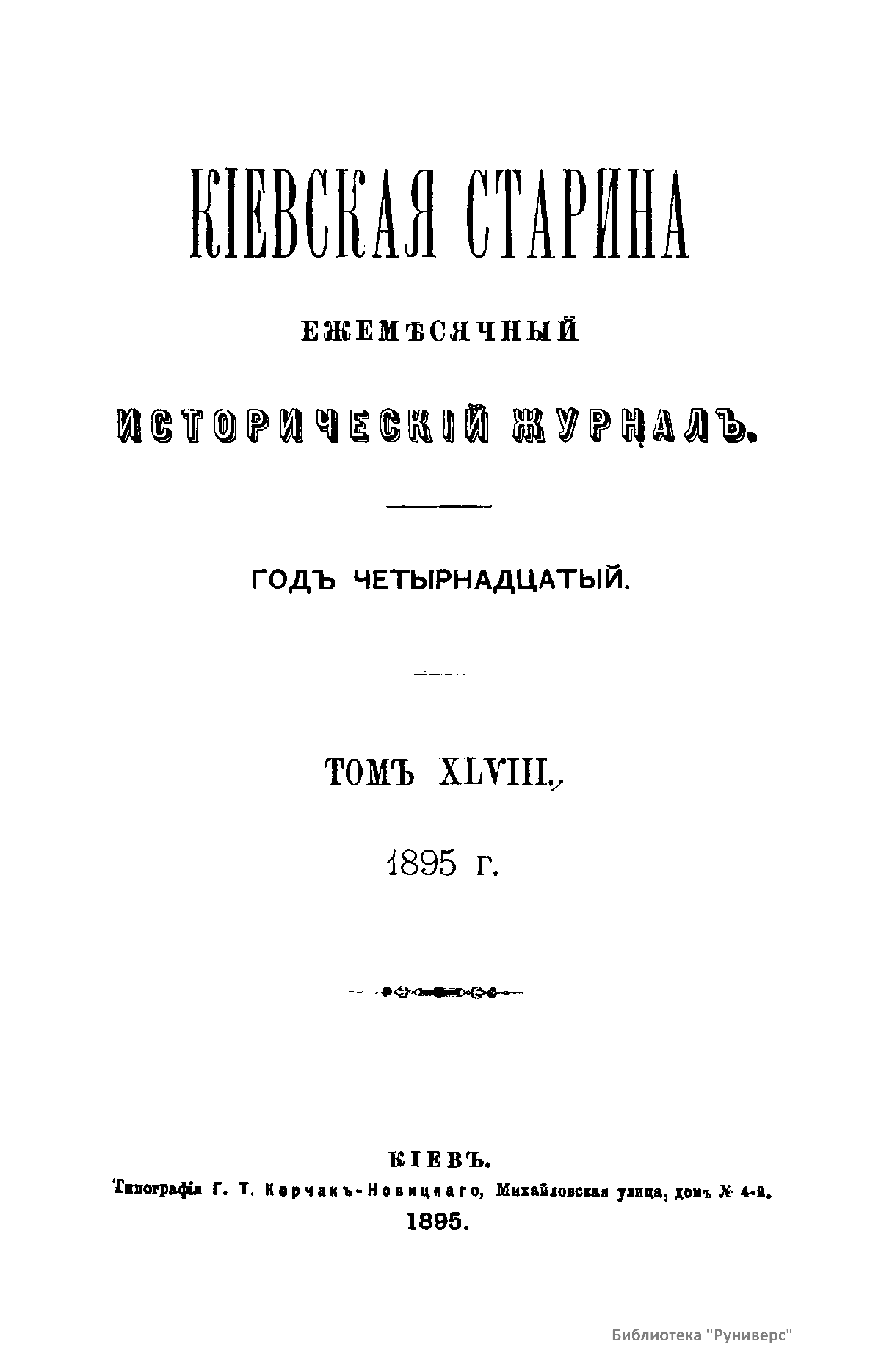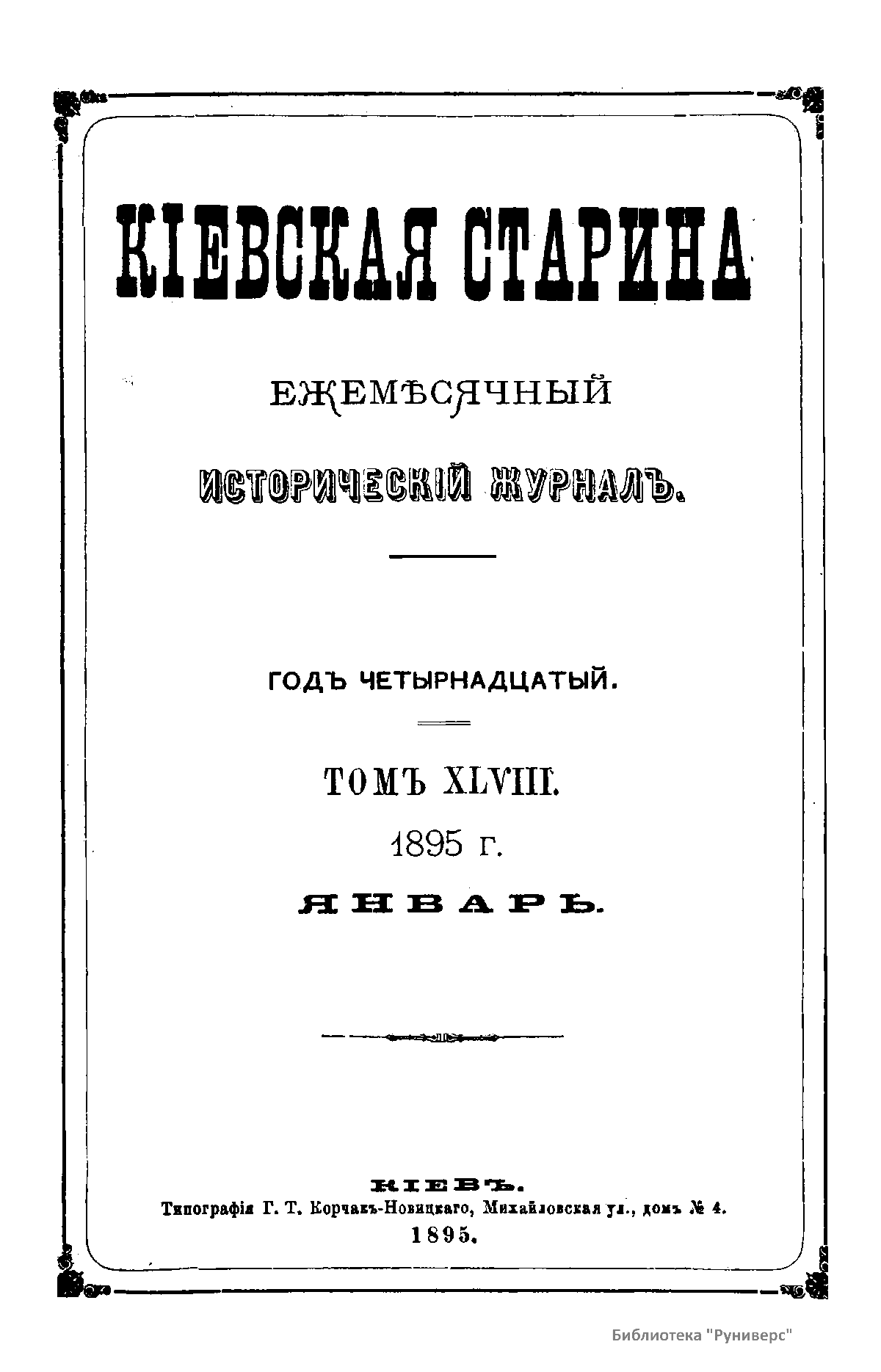 Киевская старина. Год четырнадцатый. Том XLVIII. Январь-Март 1895 г.