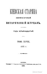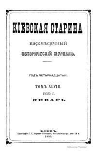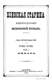 Кiевская старина. Годъ четырнадцатый. Томъ XLVIII. Январь-Мартъ 1895 г.