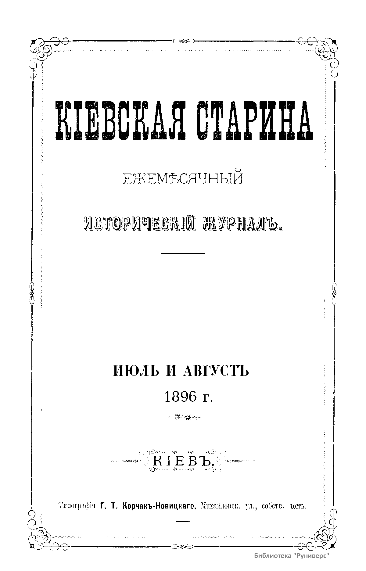Кiевская старина. Годъ пятнадцатый. Томъ LIV. Iюль-Сентябрь 1896 г.