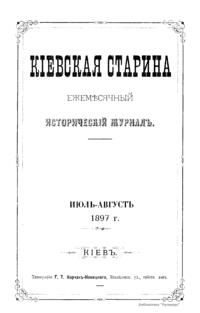Кiевская старина. Годъ шестнадцатый. Томъ LVIII. Iюль-Сентябрь 1897 г.