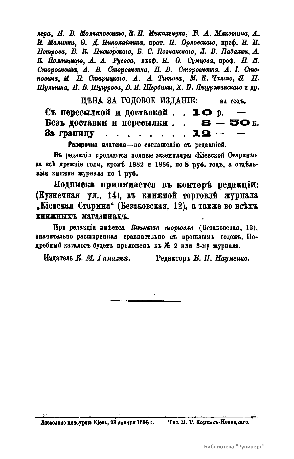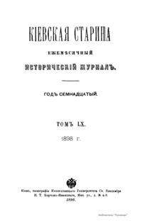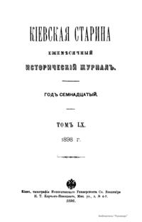 Кiевская старина. Годъ семнадцатый. Томъ LX. Январь-Мартъ 1898 г.