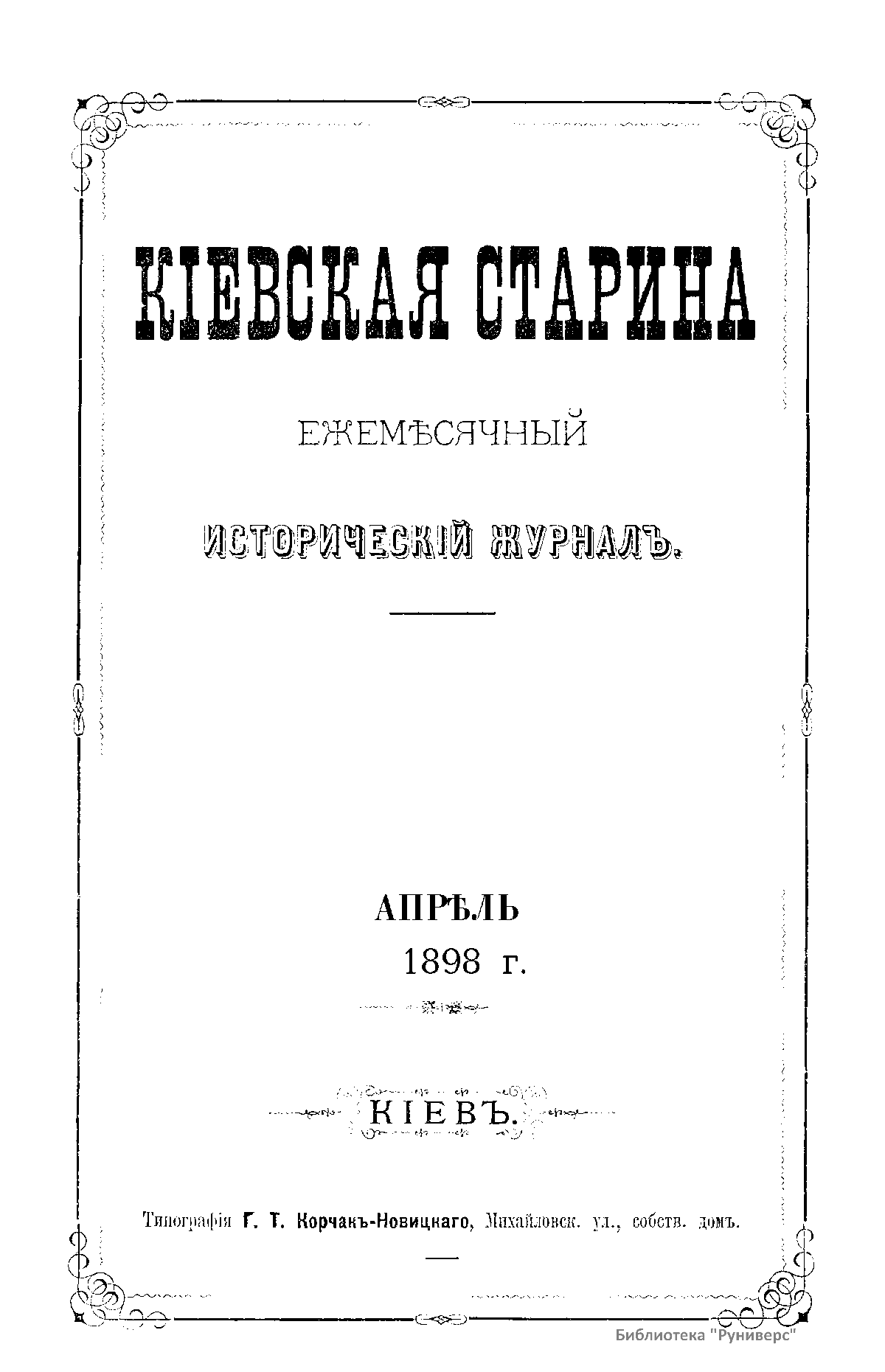 Кiевская старина. Годъ семнадцатый. Томъ LXI. Апрѣль-Iюнь 1898 г.