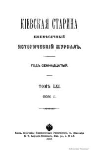 Киевская старина. Год семнадцатый. Том LXI. Апрель-Июнь 1898 г.