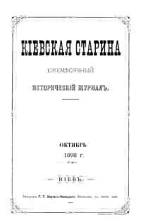 Кiевская старина. Годъ семнадцатый. Томъ LXIII. Октябрь-Декабрь 1898 г.