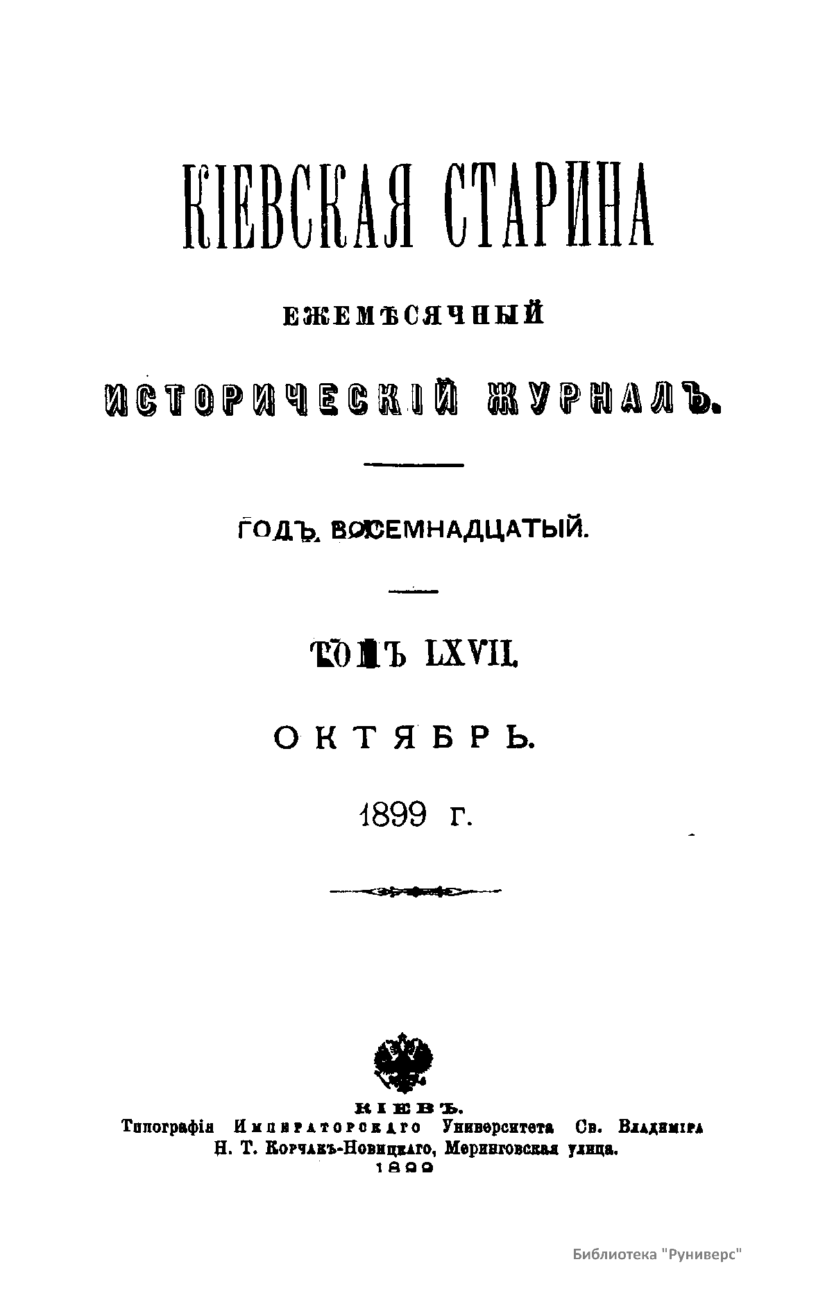 Киевская старина. Год восемнадцатый. Том LXVII. Октябрь-Декабрь 1899 г.