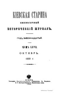 Кiевская старина. Годъ восемнадцатый. Томъ LXVII. Октябрь-Декабрь 1899 г.