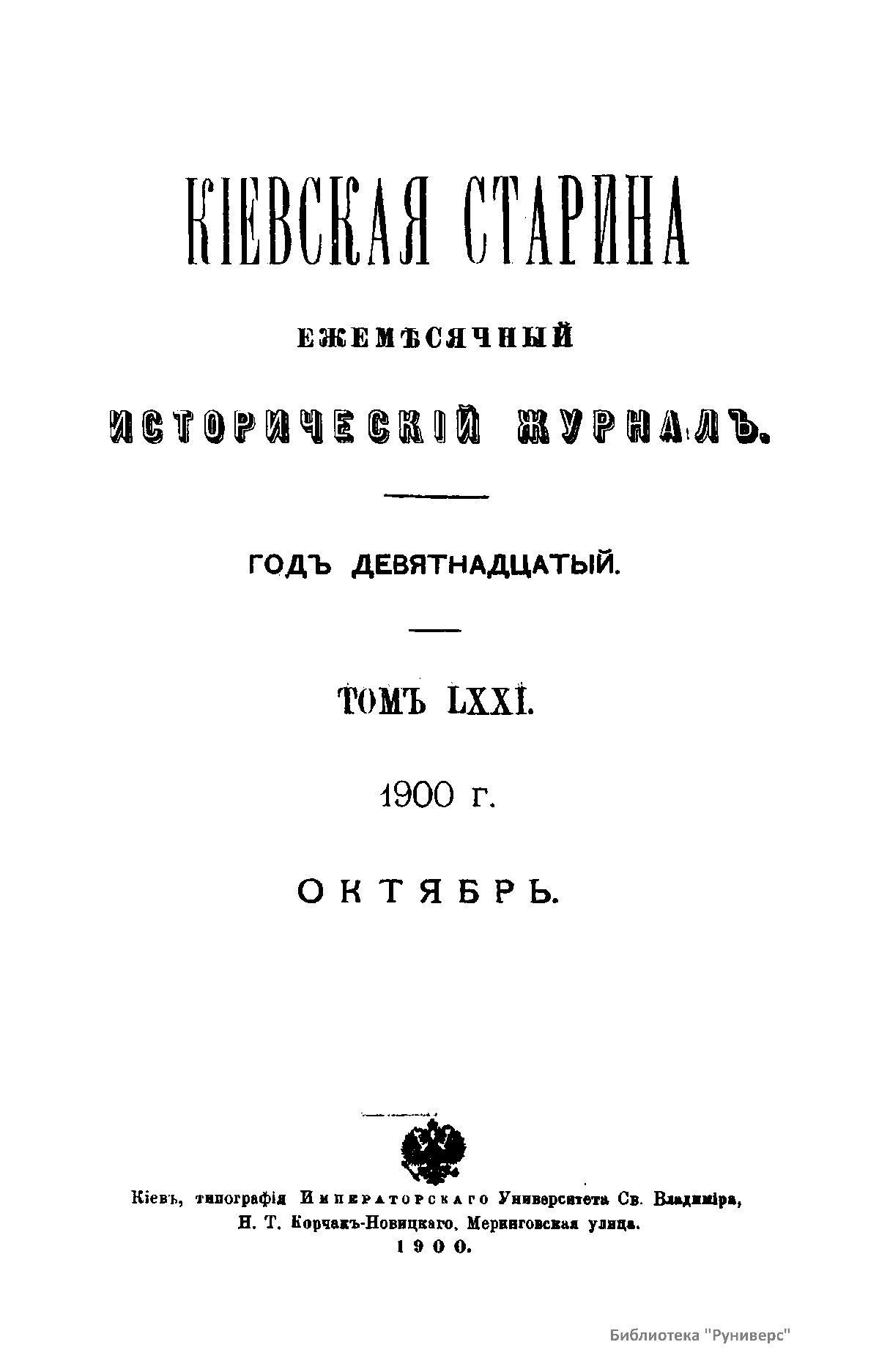 Киевская старина. Год девятнадцатый. Том LXXI. Октябрь-Декабрь1900 г.