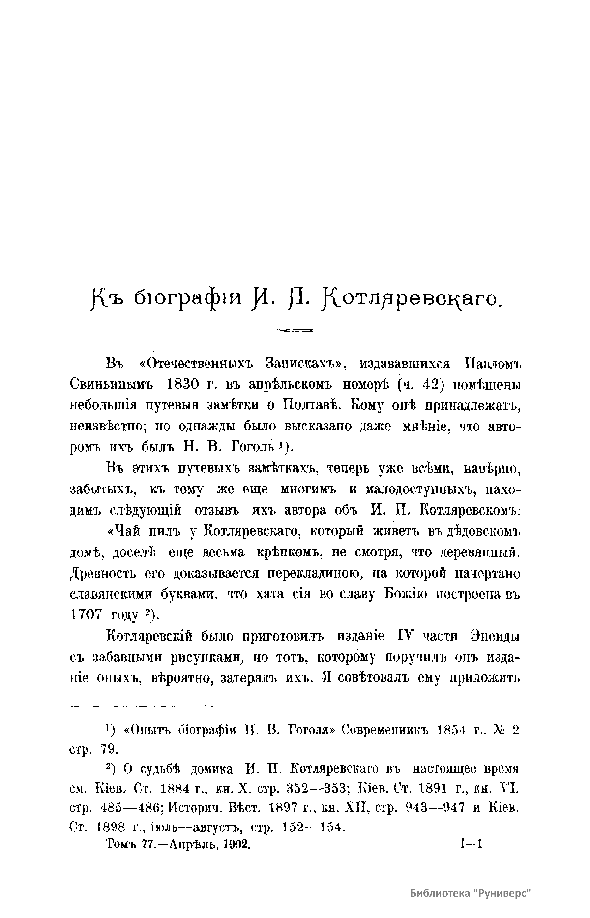 Киевская старина. Год двадцать первый. Том LXXVII. Апрель-Июнь 1902 г.
