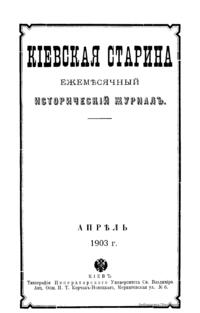 Киевская старина. Год двадцать второй. Том LXXXI. Апрель-Июнь 1903 г.