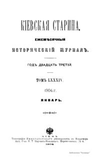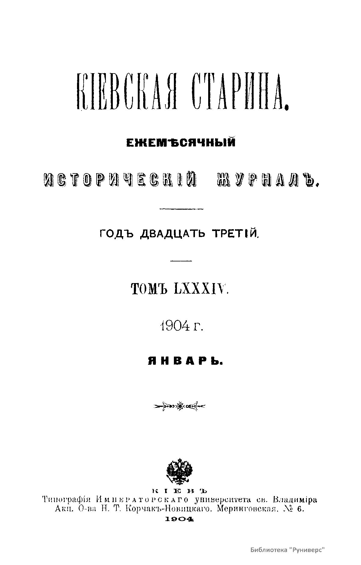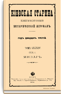 Кiевская старина. Годъ двадцать третiй. Томъ LXXXIV. Январь-Мартъ 1904 г.