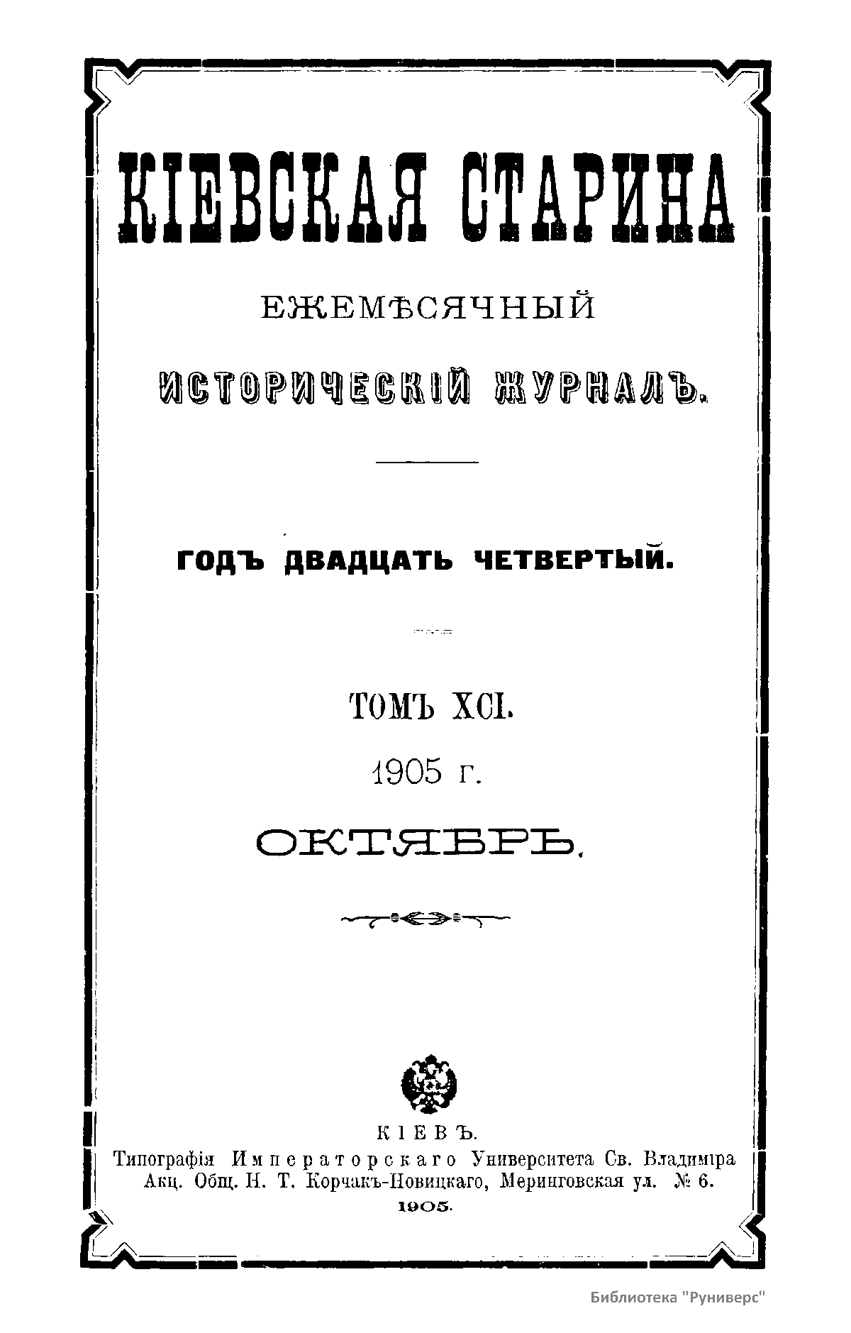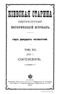 Киевская старина. Год двадцать четвертый. Том XCI. Октябрь-Декабрь 1905 г.