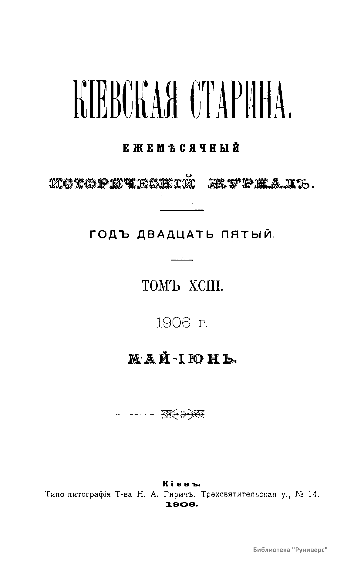 Киевская старина. Год двадцать пятый. Том XCIII. Май-Август 1906 г.
