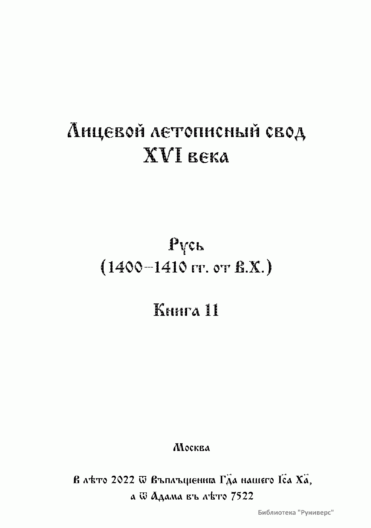 Лицевой летописный свод Ивана Грозного. Русь (1400 - 1410 гг. от. В.Х.) Книга 11