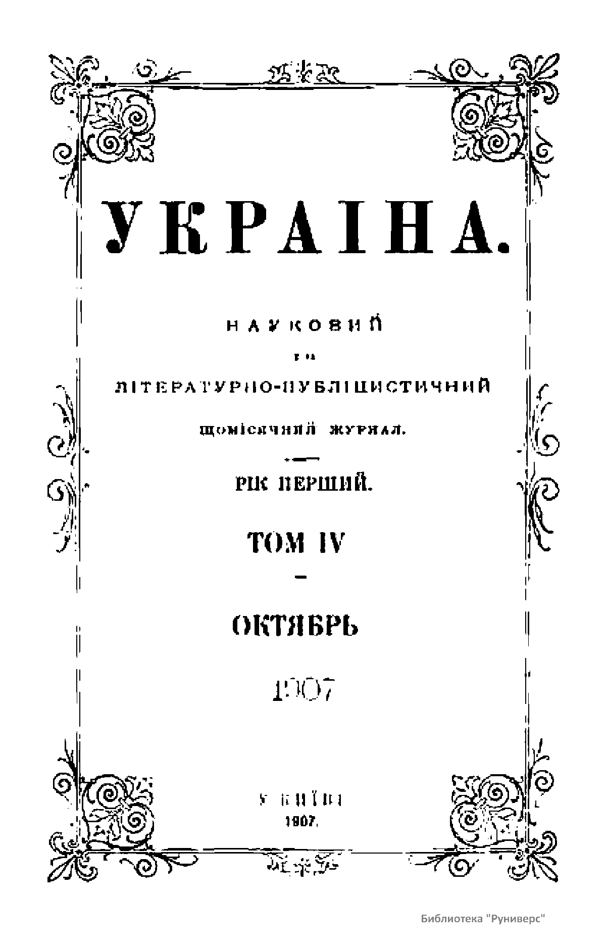 Украiна. Рiк перший. Том IV. Октябрь-Декабрь 1907 г.