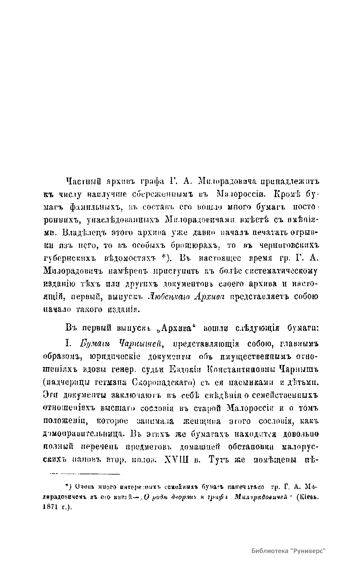 Любецкий архив графа Милорадовича
