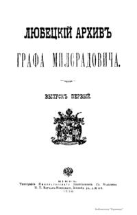 Любецкiй архивъ графа Милорадовича